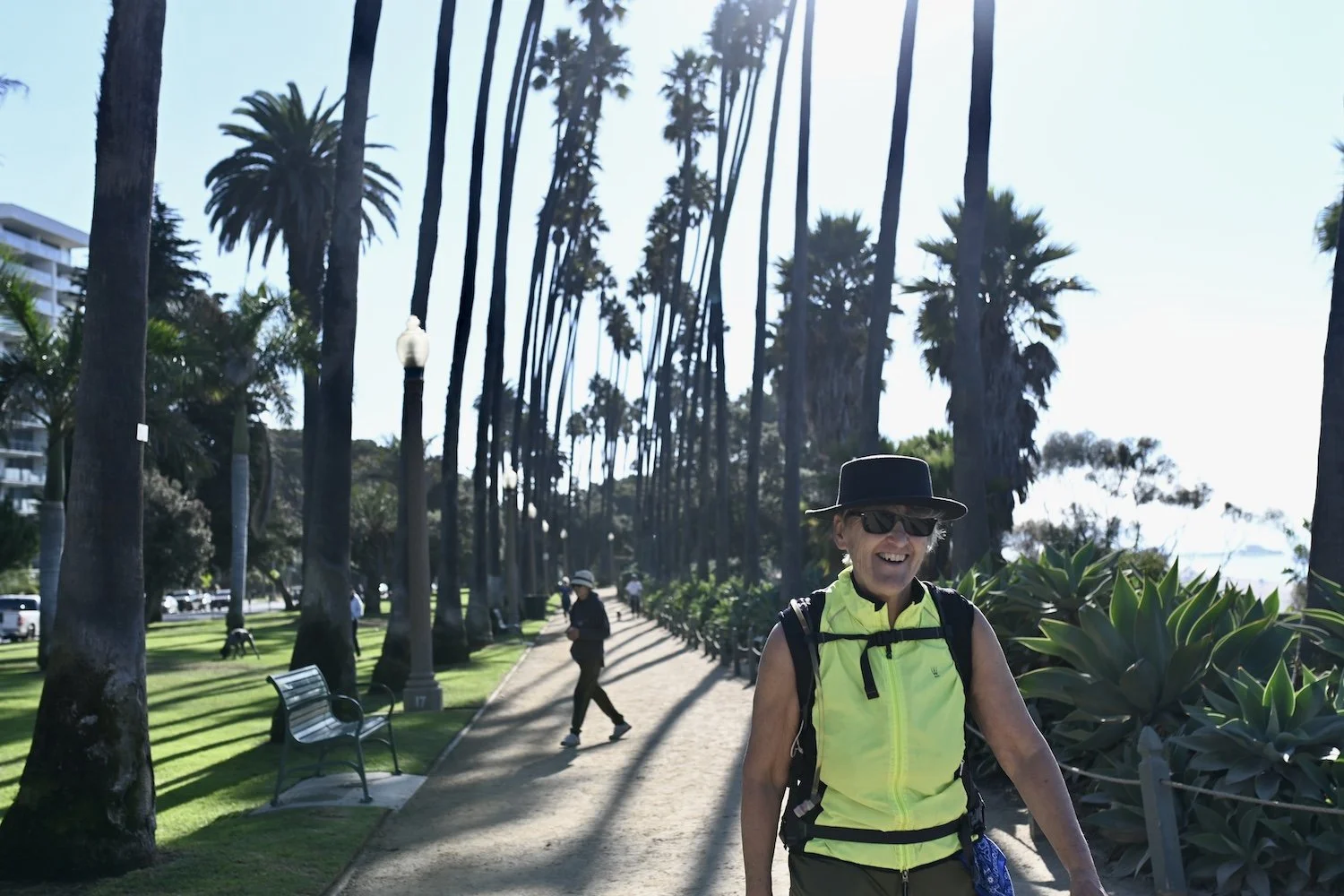 Our latest coastal walk, which we undertook On November 5th-9th of this year, landed us at El Matador beach in Malibu. The point where we sat at a picnic table overlooking the ocean waiting for an Uber to take us back to our campground, Malibu RV Park/Surf Outpost, marked mile 662 of our extended journey. During our previous visit to the area, May 8-13, 2024, we’d covered 48 miles hoofing it from Wilmington, a historic, largely industrial neighborhood around the Los Angeles harbor, to the Santa Monica pier. We caught an Uber in front of a three story pink and purple house a couple blocks from the pier, which we dubbed the Barbie house. As we waited, I recounted to Jo that as a child, I pled with my future adult self to remember that I wanted to live in a house painted purple with pink polka dots.