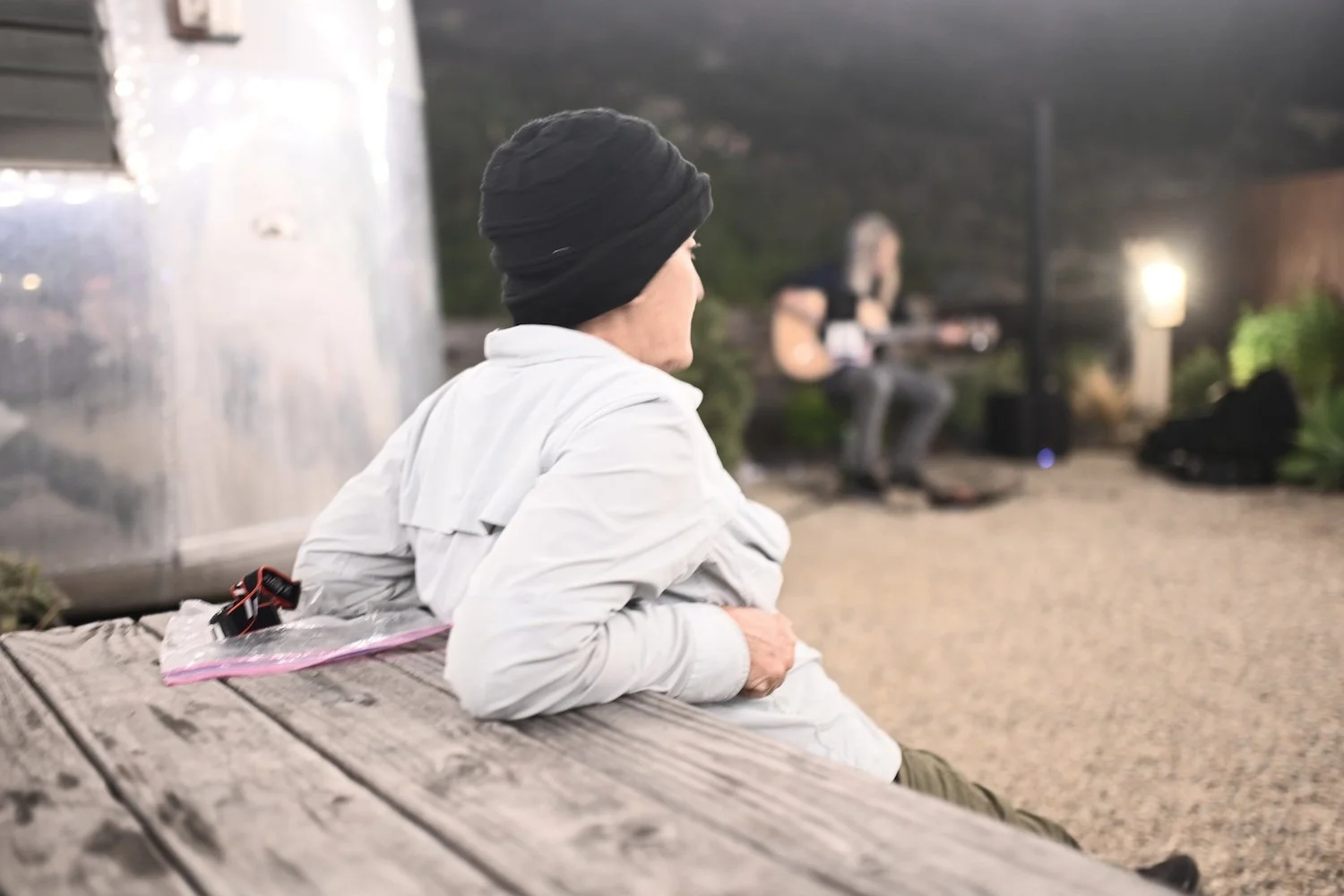 Jo enjoying Chris Anderson’s performance at Surf Outpost.