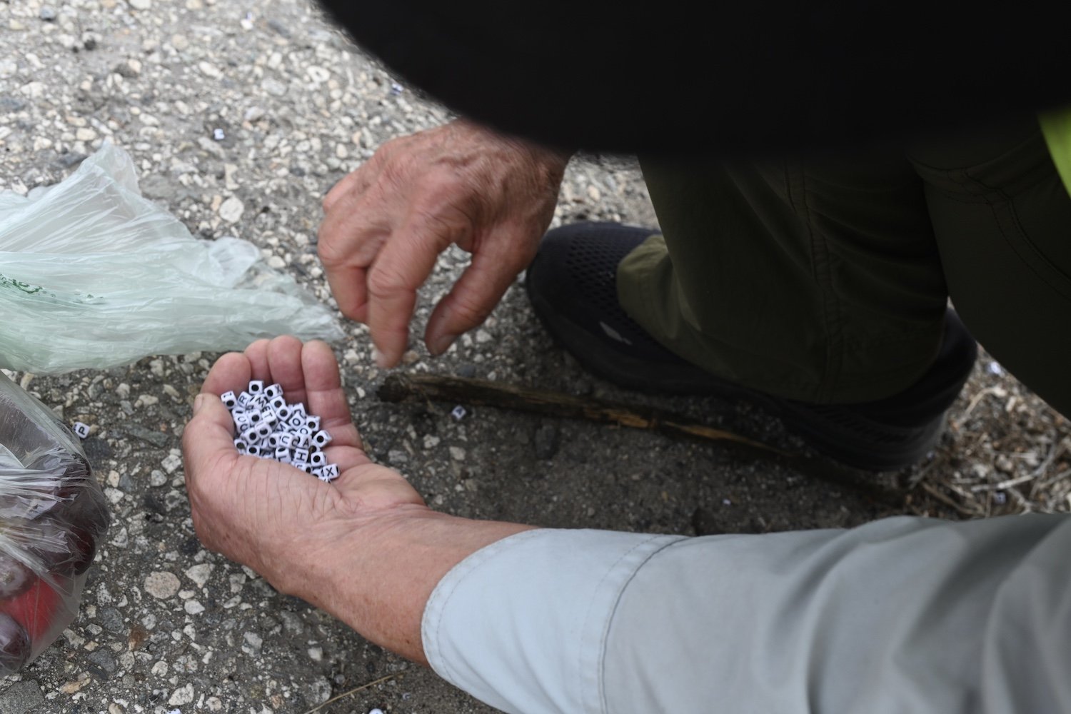 Along the roadside, we spotted a stretch of hundreds and hundreds of these little alphabet beads. Maybe someone dropped a bag of them from their car. Jo and I sat down and started picking them up with the industriousness of seven year olds. I practically had to pry Jo off the road. She’ll use them in one of her amazing ceramic mosaics.